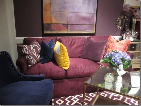 Because I am not in the design industry, I think that it’s fascinating to wander around High Point Furniture Market and see all of the new trends, well before they appear in your local furniture store. You start getting glimpses of some of these trends in the shelter magazines, and somehow, all of the furniture companies, fabric houses and others in the industry are on the same page. If you hover over the images, you can see which showroom the pieces are from (look all the way at the end of the string of numbers and letters). Here are some of the major trends I noticed: